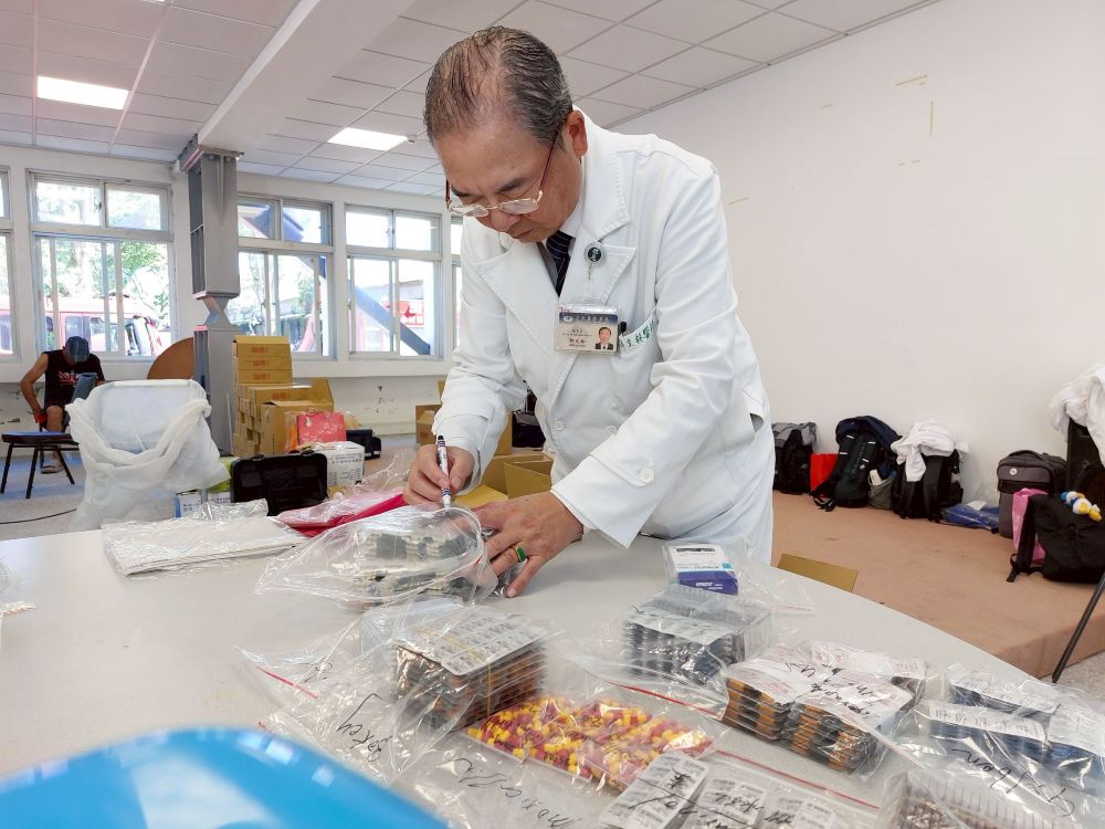 除了專科醫療,花蓮慈院醫療隊也帶來了目前當地民眾最需要的藥物資源,藥學部主任劉采艷指出,該院與慈濟東區人醫會每個月有固定的義診行程,這次在藥物的準備上,除了原有的義診藥物基礎,還特別針對風災水患過後,可能會有外傷或接觸汙水造成的感染問題,準備了眼藥水、外用抗生素藥膏、痠痛藥膏、破傷風藥物、內用抗生素及止痛藥。另外也考量到民眾可能會在慌亂中遺失日常用藥,所以,多備了三高與糖尿病的藥物,目前先備妥100份的藥物,如果現場藥物不足或者有其他需要的藥物,也會透過VPN連線回花蓮慈院,藥學部會立即準備,交由隔天的醫療隊帶到醫療站。