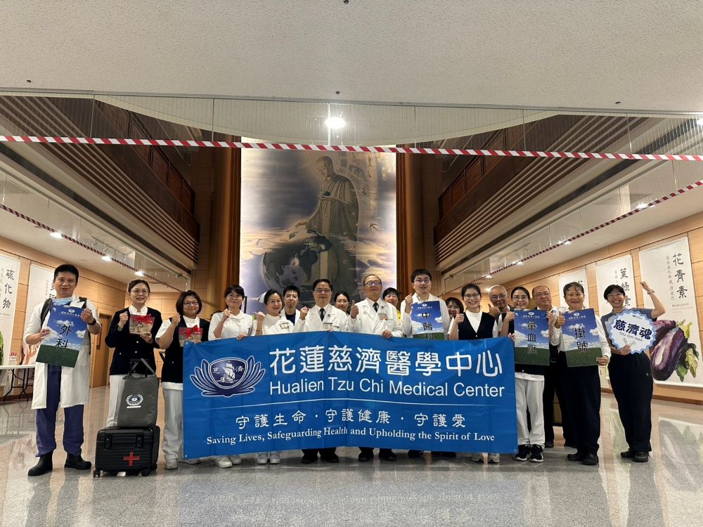 花蓮縣馬太鞍溪堰塞湖溢流潰決洪災重創光復鄉,造成多人傷亡、失聯,今(25)日上午7時,由花蓮慈院院長室帶領,包含內科、外科、感染科、心臟內科與中醫科在內的醫護及行政團隊,浩浩蕩蕩前往光復糖廠喜悅樓駐診。