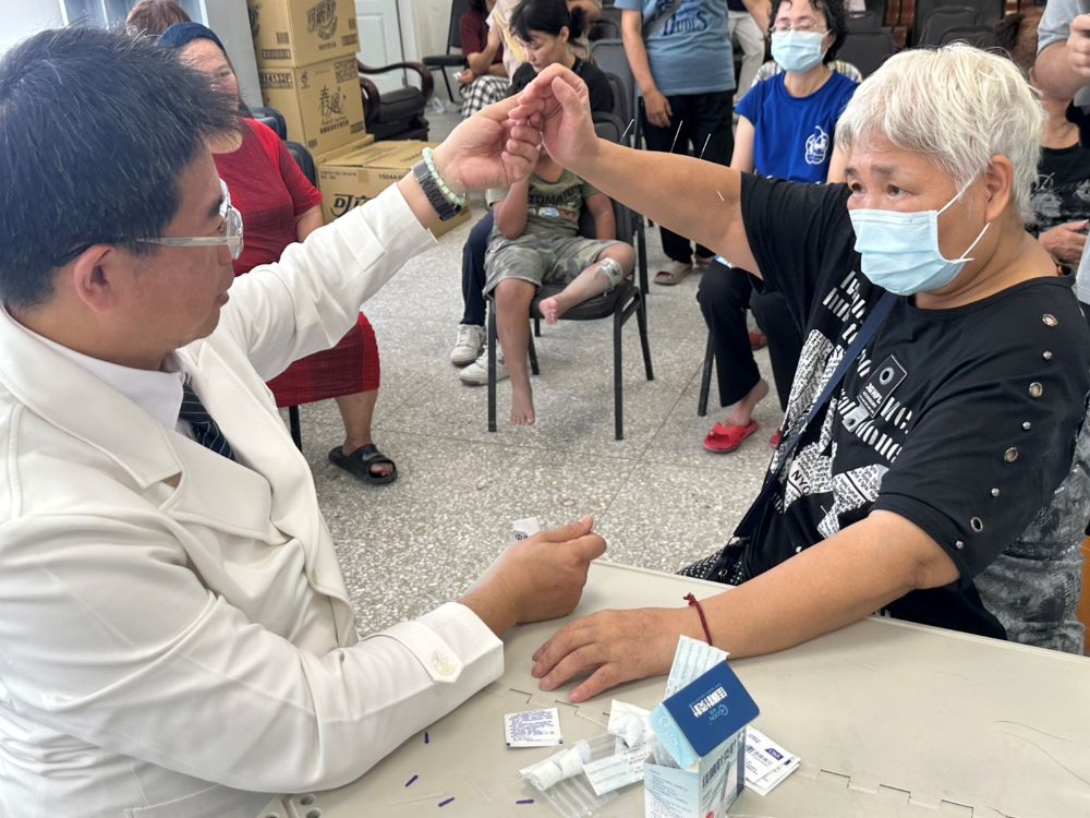▲花蓮慈院副院長何宗融為鄉親針灸治療。