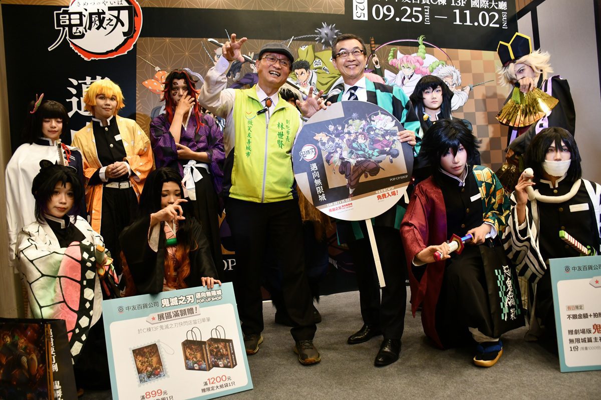 彰化市長林世賢25日上午專程趕赴台中中友百貨公司,偕同該公司台中店的店長陳俊華,一起為該店《鬼滅之刃》與《膽大黨》雙重知名動畫快閃店開幕造勢,同時雙雙為即將於10月18日,在彰化市旭光西路中友百貨彰化店基地旁的成功公園,盛大舉辦的「中友獻愛!百貨生活祭in彰化…」,並有《鬼滅之刃》Coser現身!