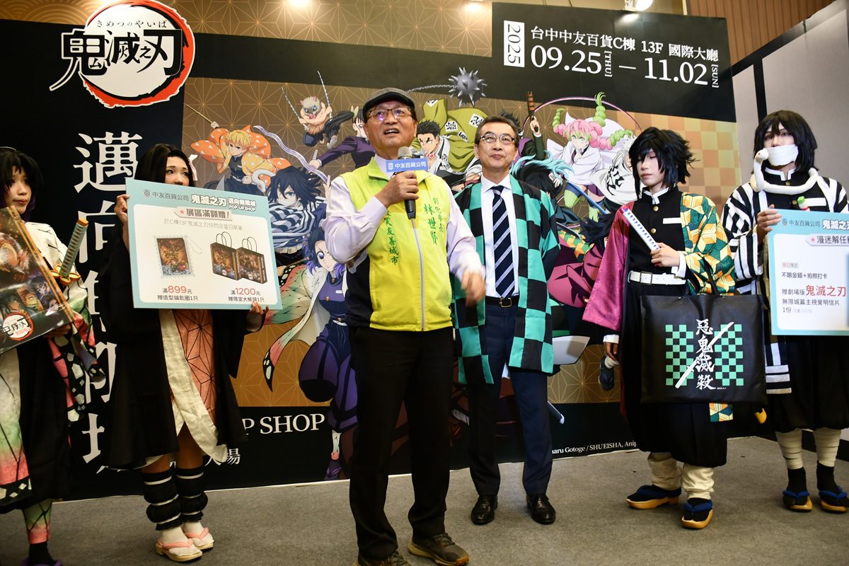 ▲林世賢市長現身中友台中店為該店《鬼滅之刃》與《膽大黨》雙重快閃店開幕站台。(圖/彰化市公所提供)