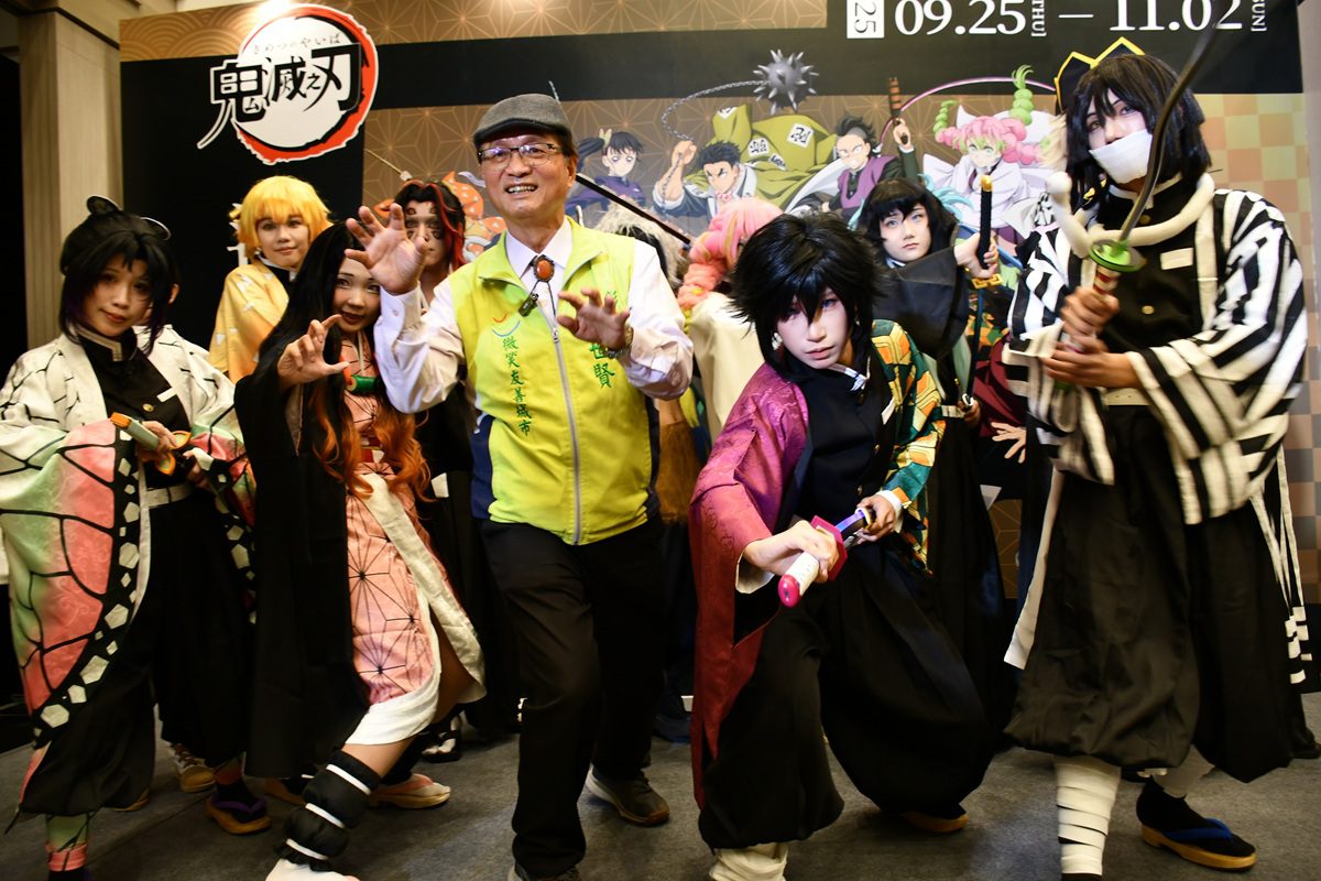 ▲林世賢市長和知名動畫《鬼滅之刃》Coser一起作怪。(圖/彰化市公所提供)