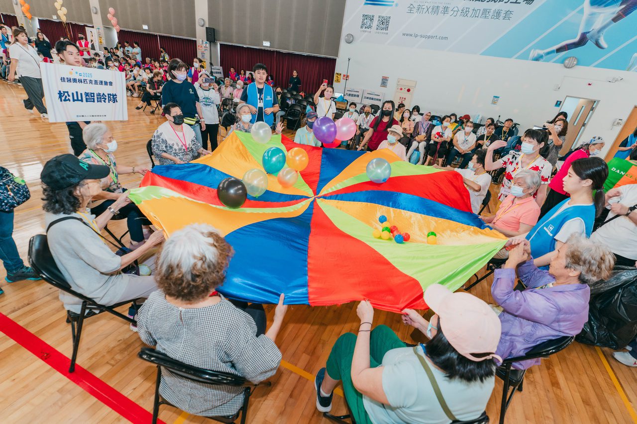 運動會現場除設有失智檢測、台北市政府衛生局社區營養推廣中心、輔具使用訓練、生活體能訓練用品、救護站,亦結合趣味競賽及闖關遊戲,促進長輩認知訓練與健康照護,讓他們在歡笑與掌聲中訓練記憶與反應,家屬與志工們也熱情加油打氣,場面溫馨感人。