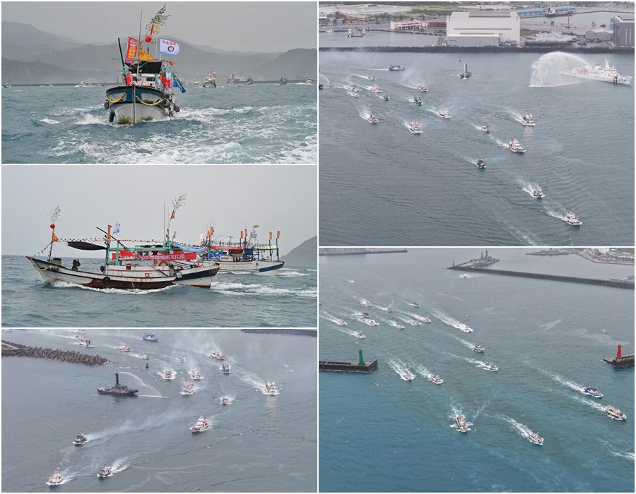 2025蘭陽媽祖文化節,26日早上由漁船和賞鯨船組成的船隊,載著媽祖等神尊與信眾,從南方澳第三漁港啟航,在陰雨綿綿中頂著風浪一路北巡祈安,遶巡龜山島後抵達頭城烏石港舉行海陸會香,下午在大批陣頭與香客的伴隨下展開陸巡活動,再度掀起一波宗教盛事。