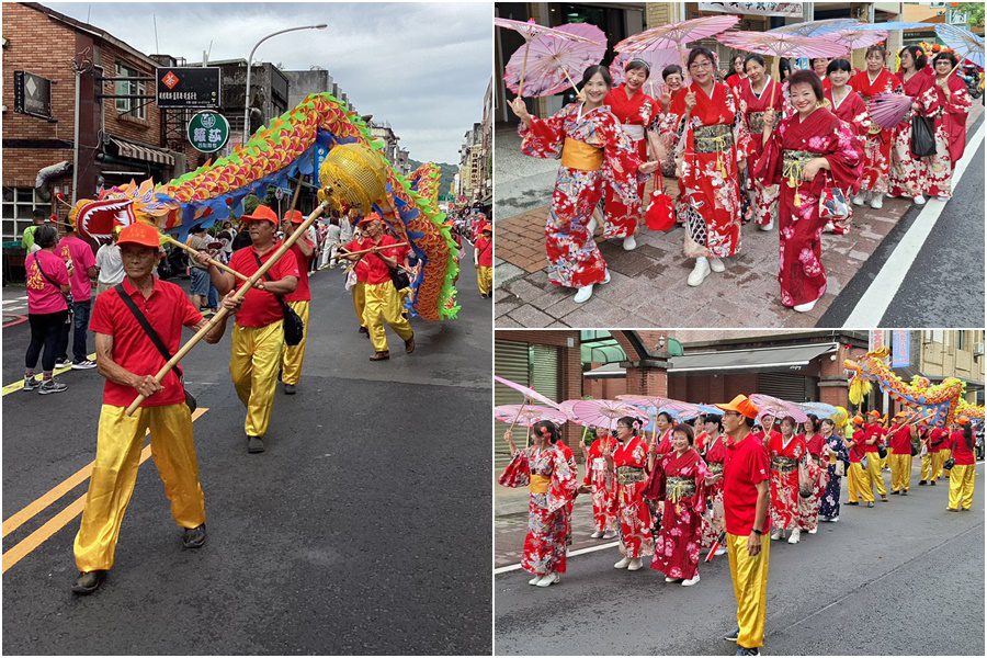 ▲蘭陽城鄉美學基金會頭城志工隊的舞龍、噶瑪蘭工藝關懷協會的日本舞表演,為遶境祈安活動增添活力與精彩。(圖/阮錫河攝)
