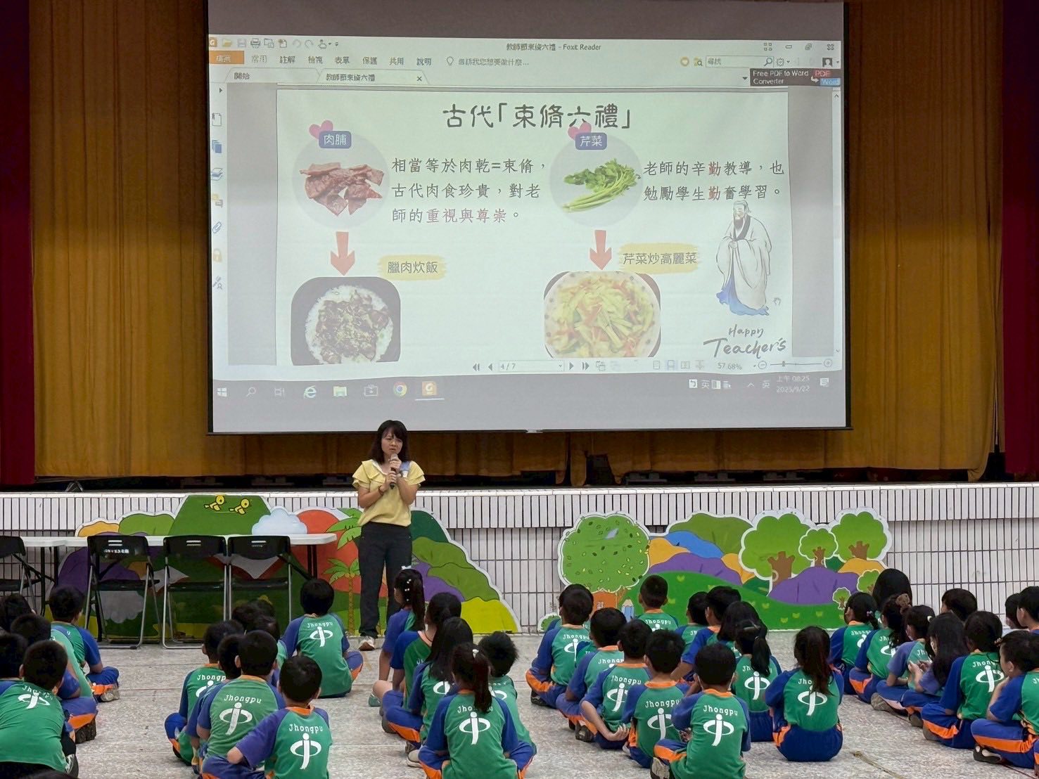 九月份適逢敬師月,嘉義縣中埔國小中央廚房發揮巧思,推出別具文化意涵的「束脩六禮餐」,讓學童在營養午餐中,體驗古代尊師重道的傳統禮儀,實際行動表達對教師的感恩教育。
