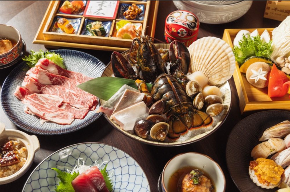 肉品陣容涵蓋多部位的宮崎縣A5和牛,稀有鹿兒島小田和牛,並提供展現職人精神的「現切溫體手切黑毛豬」。除了頂級肉品,更備有活體海鮮,從新鮮現撈到上桌皆保持最佳狀態,搭配板前料理台與鍋物呈現,為食客帶來兼具奢華與細膩的用餐體驗。