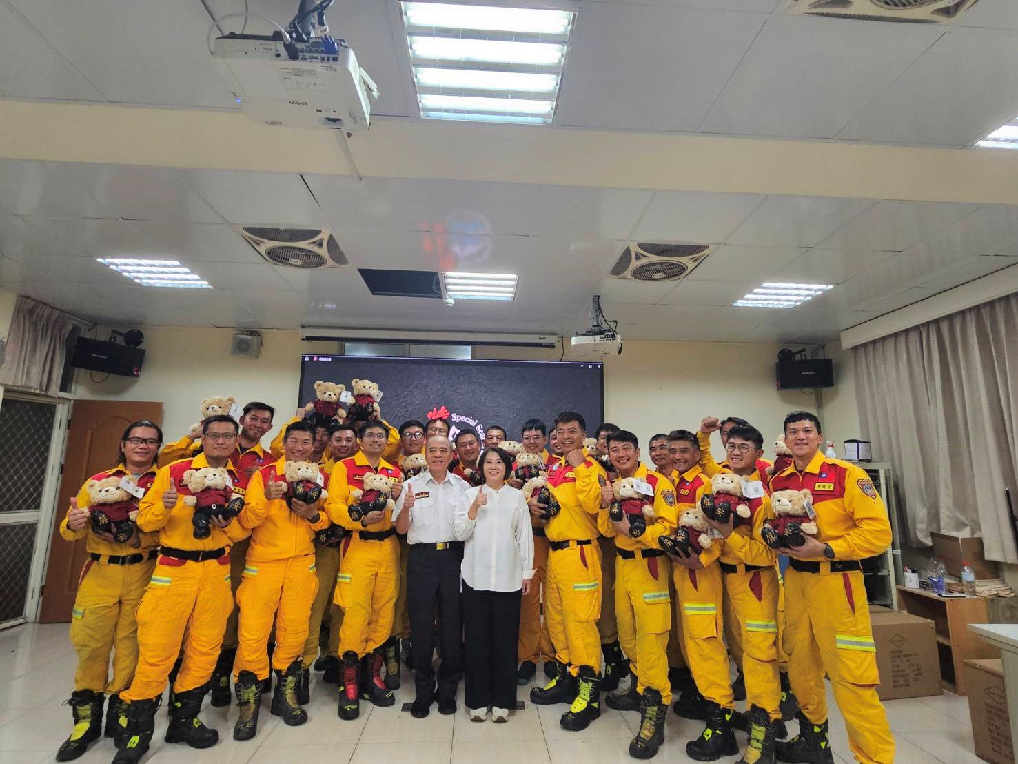 今(26)日救災任務圓滿完成,特搜大隊平安返隊,縣長周春米晚間親赴特搜大隊基地迎接英雄歸來,並致贈加菜金與紀念禮品,感謝隊員們的辛勞與付出。