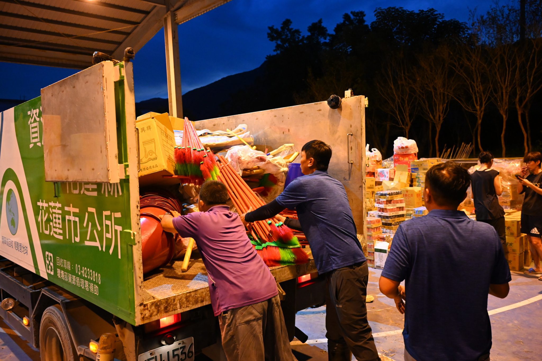在資訊傳遞與現場支援方面,花蓮縣議員笛布斯.顗賚於第一時間協助災情通報與物資調度,提升整體援助效率。花蓮市清潔隊也積極投入物資搬運工作,展現市政團隊與民眾齊心協力、共同抗災的決心。
