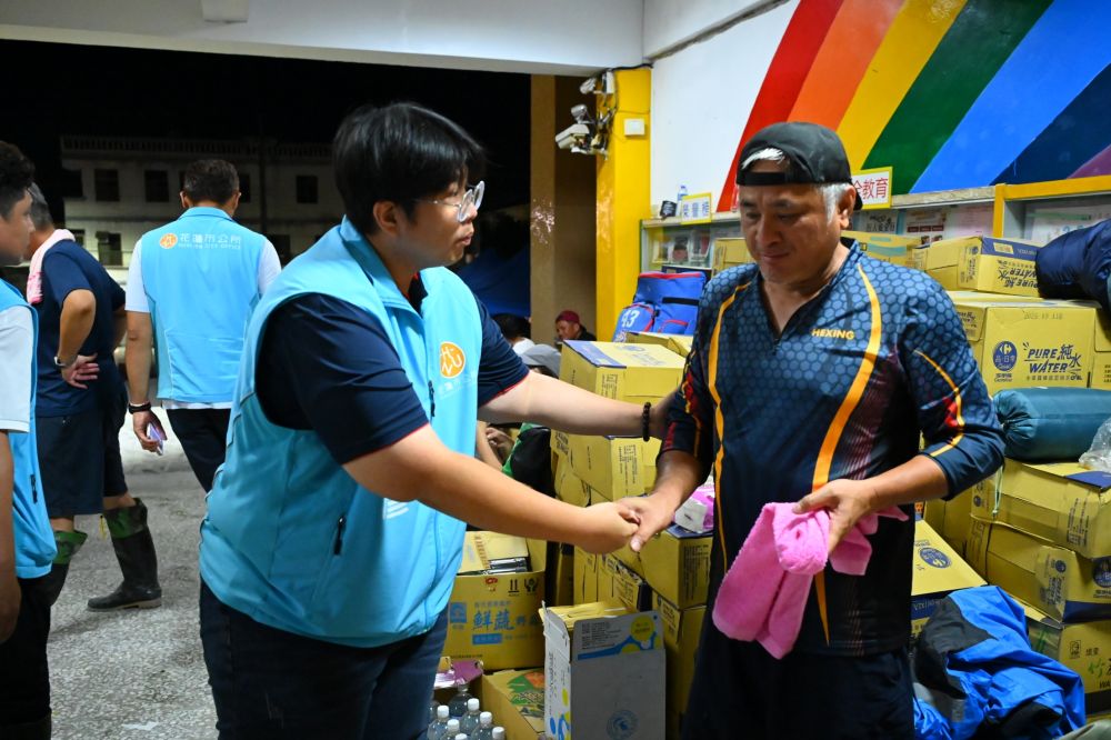 在資訊傳遞與現場支援方面,花蓮縣議員笛布斯.顗賚於第一時間協助災情通報與物資調度,提升整體援助效率。花蓮市清潔隊也積極投入物資搬運工作,展現市政團隊與民眾齊心協力、共同抗災的決心。