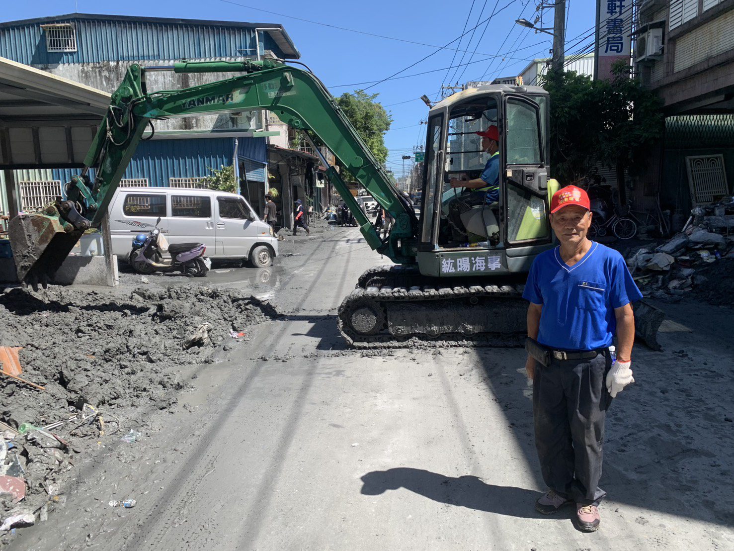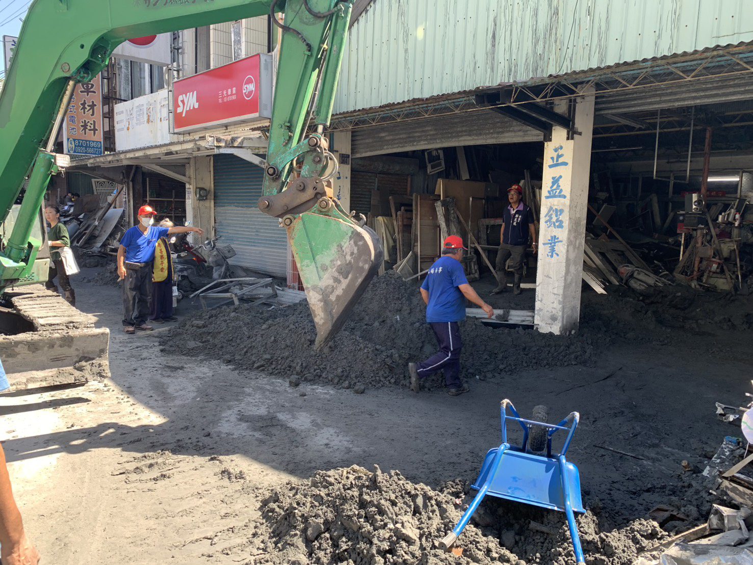 ▲靈活的小型機具清理家戶與狹窄巷道泥漿,效率頗高。