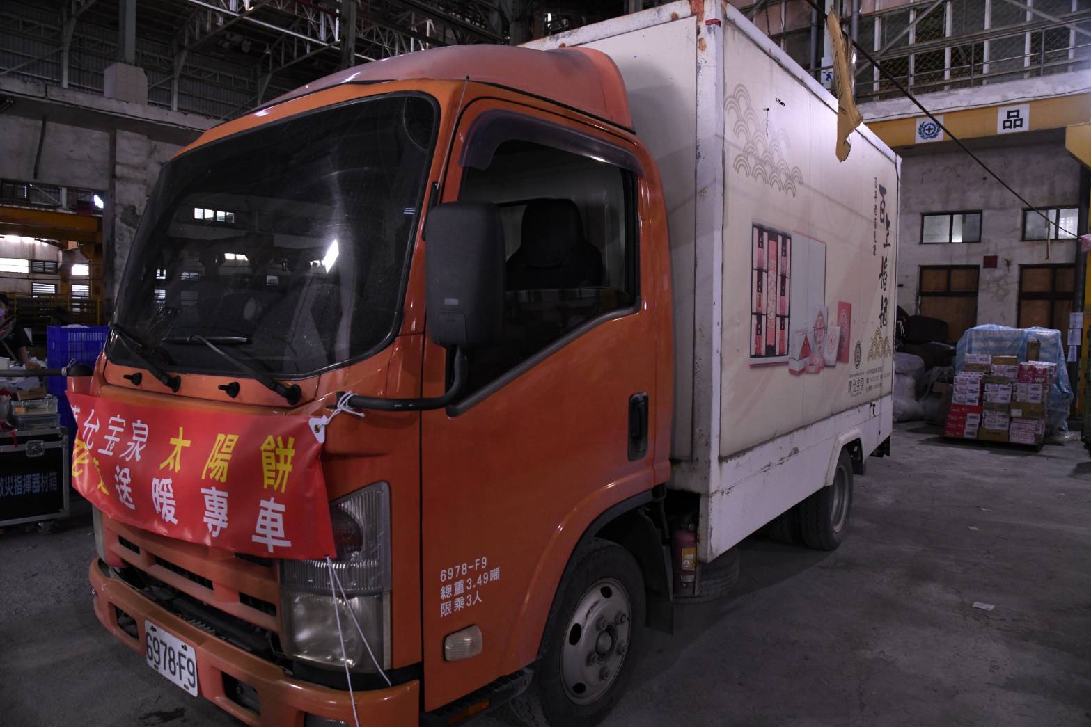 ▲陳允寶泉太陽餅專車駛抵光復鄉災區。