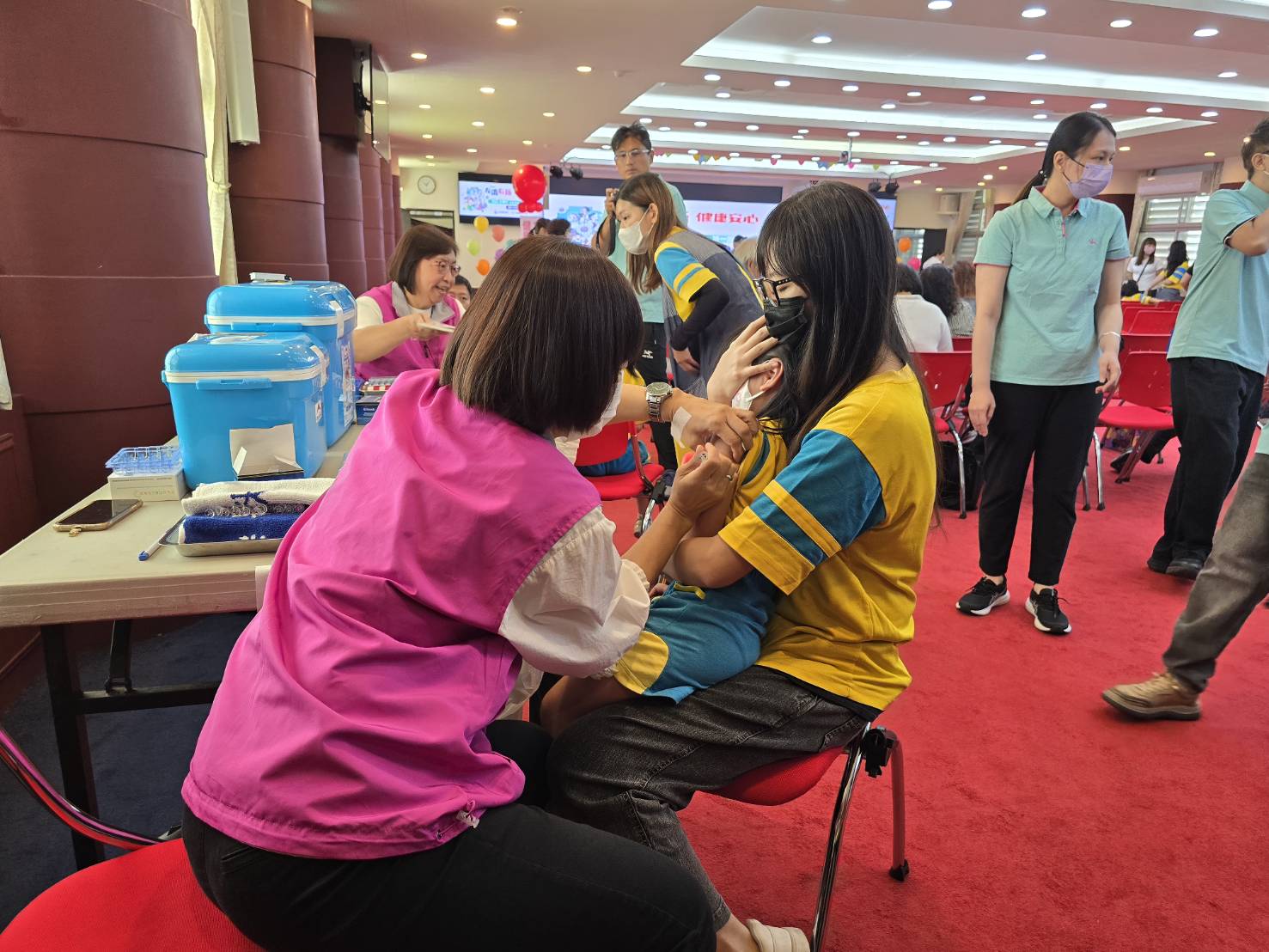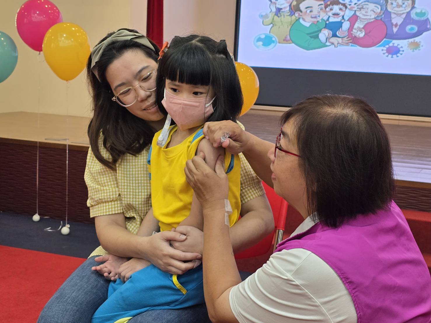 ▲與會的小朋友依序接種疫苗。