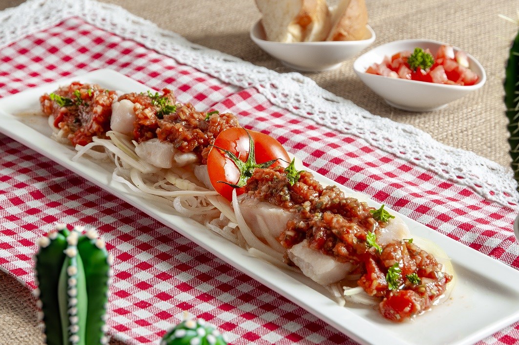 ▲「番茄莎莎魚」選用鮮嫩魚排佐上自製莎莎醬,番茄酸香清爽(圖/台北凱撒大飯店提供)