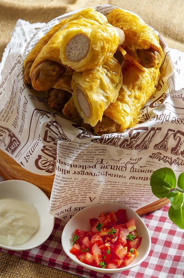 ▲「酥皮小熱狗」將鹹香迷你熱狗包入金黃酥皮中,一口一個酥脆可口,是派對聚餐的人氣小點(圖/台北凱撒大飯店提供)
