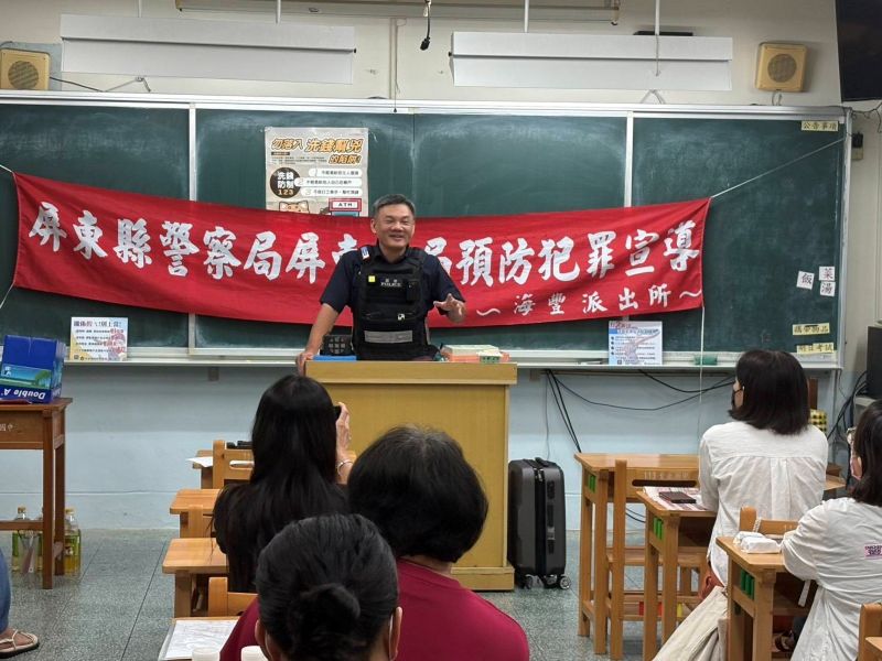 【記者何勁陞/屏東報導】 為強化社區對詐騙犯罪的警覺性與防範能力,屏東縣政府警察局屏東分局海豐派出所所長薛伊呈與土地銀行代表,近日共同走入屏北社區大學,進行識詐與打詐的資訊分享,透過警政與金融業的跨界合作,向師生揭露最新詐騙手法,並推廣警政署設置的「打詐儀表板」網站,協助民眾掌握詐騙趨勢與防詐資源。