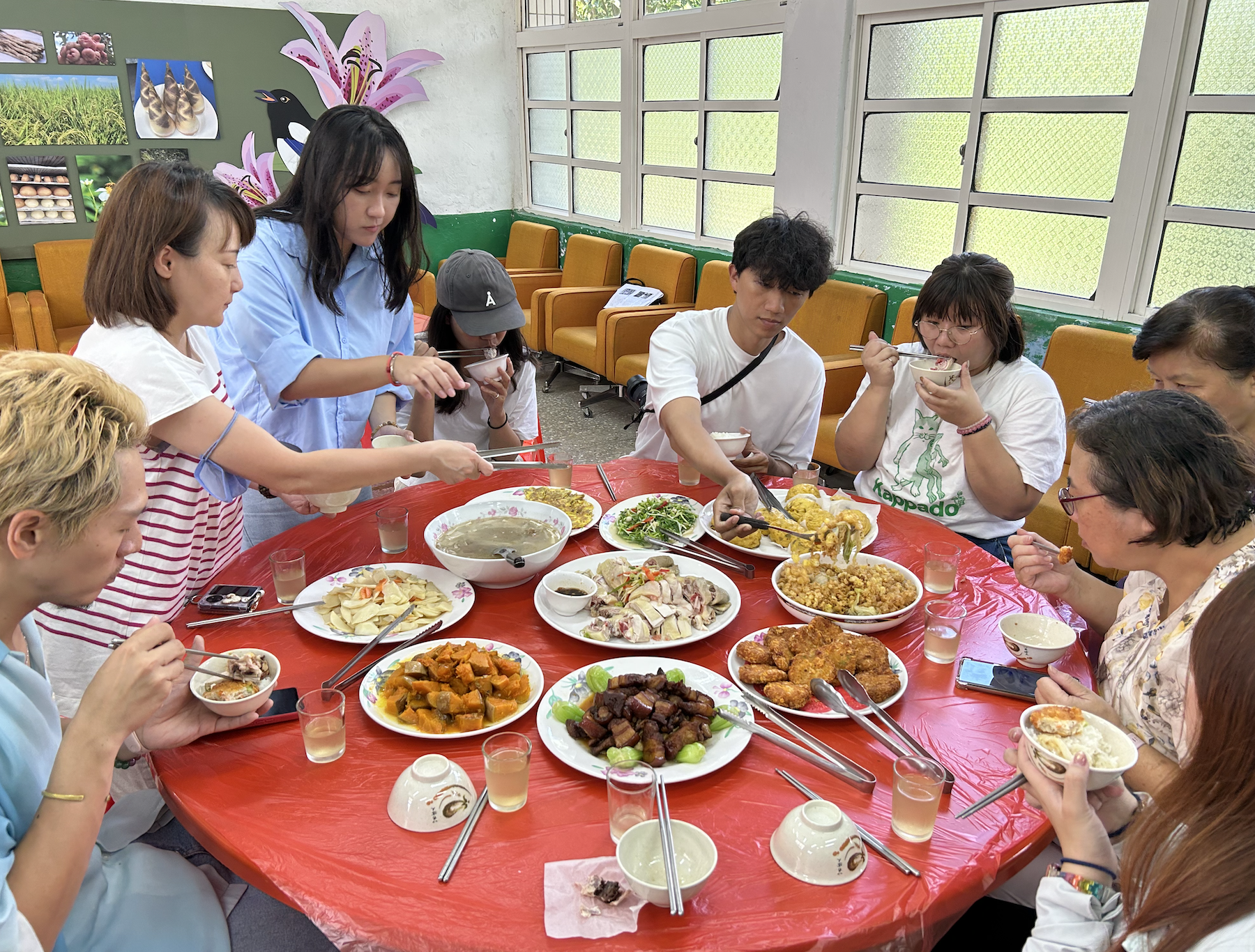 午餐時間,社區準備了一桌道地的農家料理。沒有華麗擺盤,卻每一道都吃得到在地食材的鮮甜。邊吃邊聊天,感覺回到小時候的農村廚房,特別有溫度。