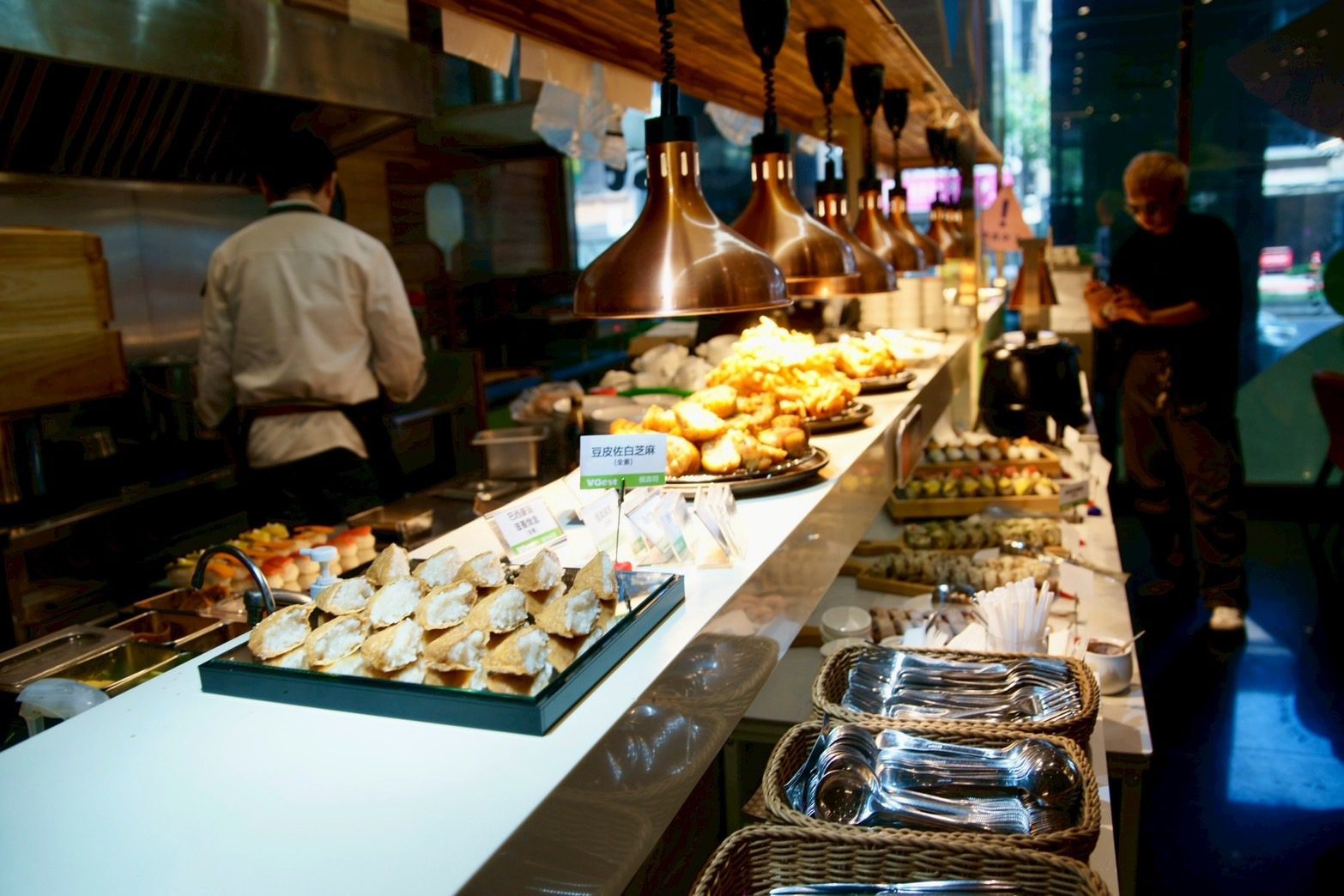 餐廳此次端出琳瑯滿目的創意料理,從義式洋菇茄汁紅醬到泰式冬蔭功獅子頭,從法式松露焗白菜到韓式春川年糕,甚至還有墨西哥百菇卷,處處展現跨國風情。日式料理區則結合握壽司、手卷與小食,讓蔬食與和風巧妙融合;披薩專區一次推出十款異國口味,包括法式松露、青醬猴菇、XO 醬豆腐、洛神花鳳梨與章魚燒風味等,並可依需求現作全素版本。主食系列更是亮點之一,「青醬松子野菇燉飯」米粒吸飽濃郁湯汁,鮮香軟綿;「牛肝菌松露義大利麵」香氣撲鼻,口感濃厚順滑;「姬松茸滋養燉湯」則將宴席級料理帶上自助餐台,誠意十足。最後,以甜點與水果吧收尾,從蛋糕、奶酪、歸苓膏到當季水果,為饗宴畫下完美句點。