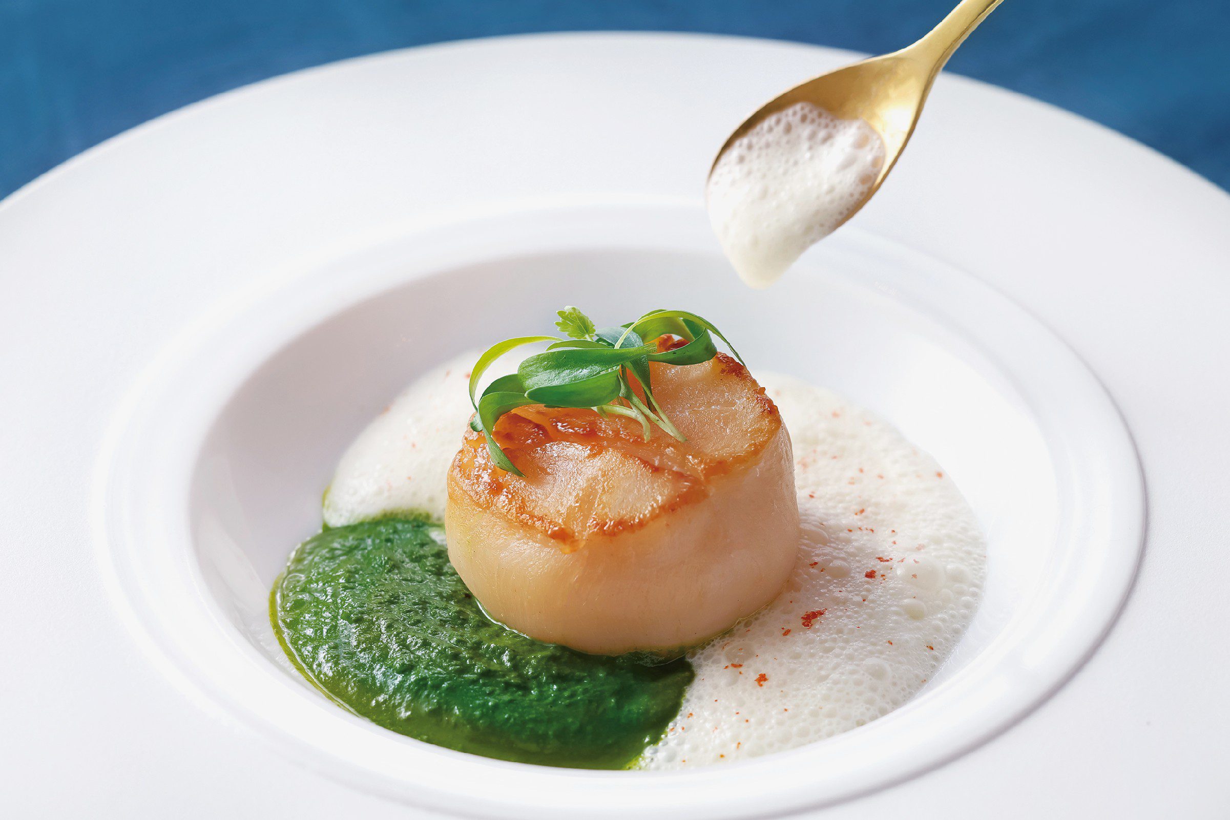 ▲北海道干貝堅果奶油醬、菠菜醬,米其林餐盤架式十足。(圖/王品集團提供)