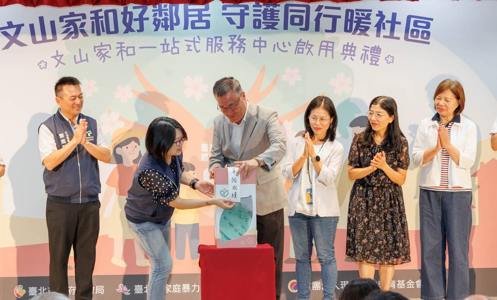 由臺北市政府社會局、臺北市家庭暴力暨性侵害防治中心與現代婦女基金會攜手合作設立的 「文山家和一站式服務中心」,今日(3日)正式啟用。啟用儀式由臺北市副市長李四川、社會局長姚淑文、家防中心主任廖秋芬、現代婦女基金會執行長邱淑華及超過60個文山在地服務團隊組成的「好鄰居守護隊」共同見證,宣告社區防暴服務新里程碑的開始。