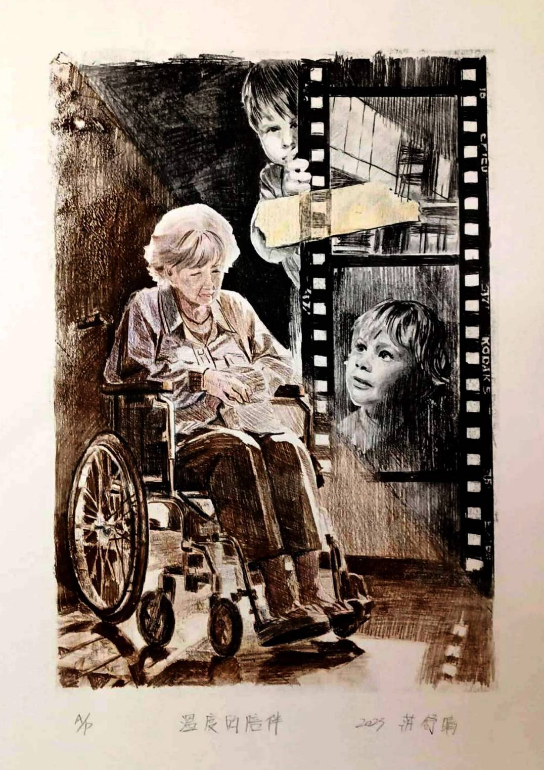 莊舒晴2023畫: 《溫度的陪伴》: 71 × 53 cm (含框) : 版畫 (單版刷)