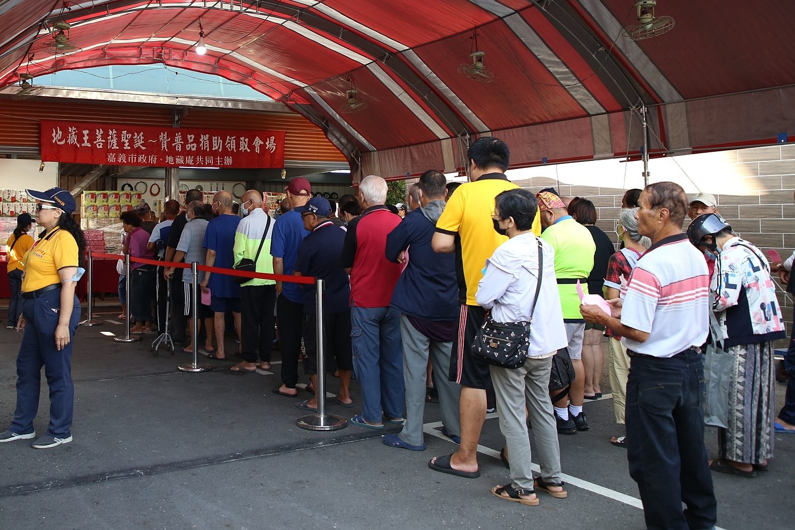 ▲九華山地藏庵攜手嘉義市政府發放贊普品,希望讓弱勢家庭在中秋節慶感受到關懷與溫暖。(圖/嘉義市政府提供)
