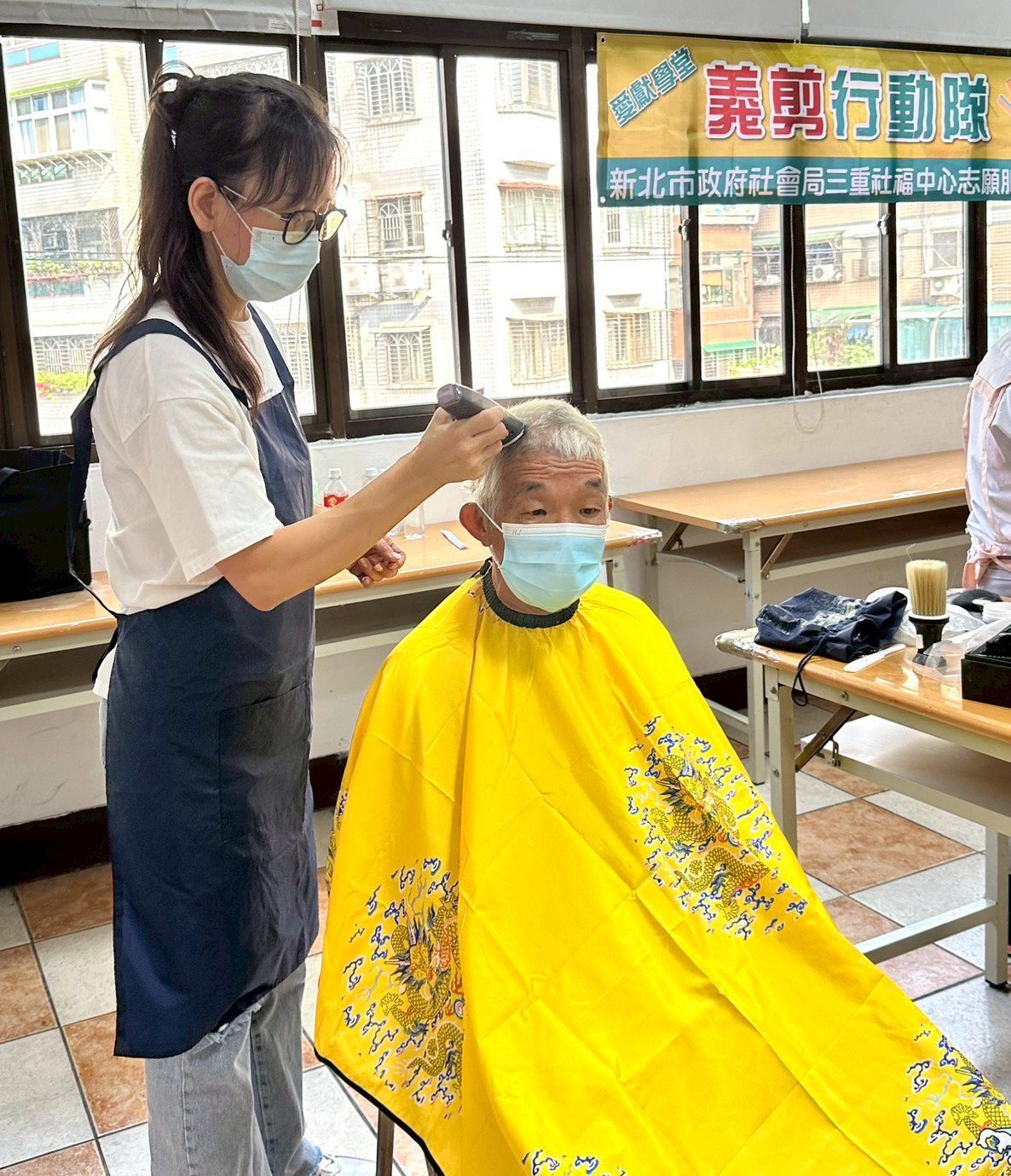 ▲三重社福中心志工隊為街友義剪。(圖/新北市社會局 提供)