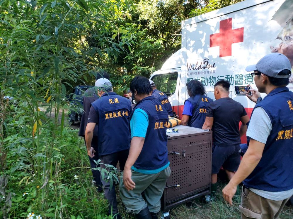 ▲黑熊救援小組將黑熊運送上醫療車,準備野放森林。(圖/花蓮林業分署提供,下同 )