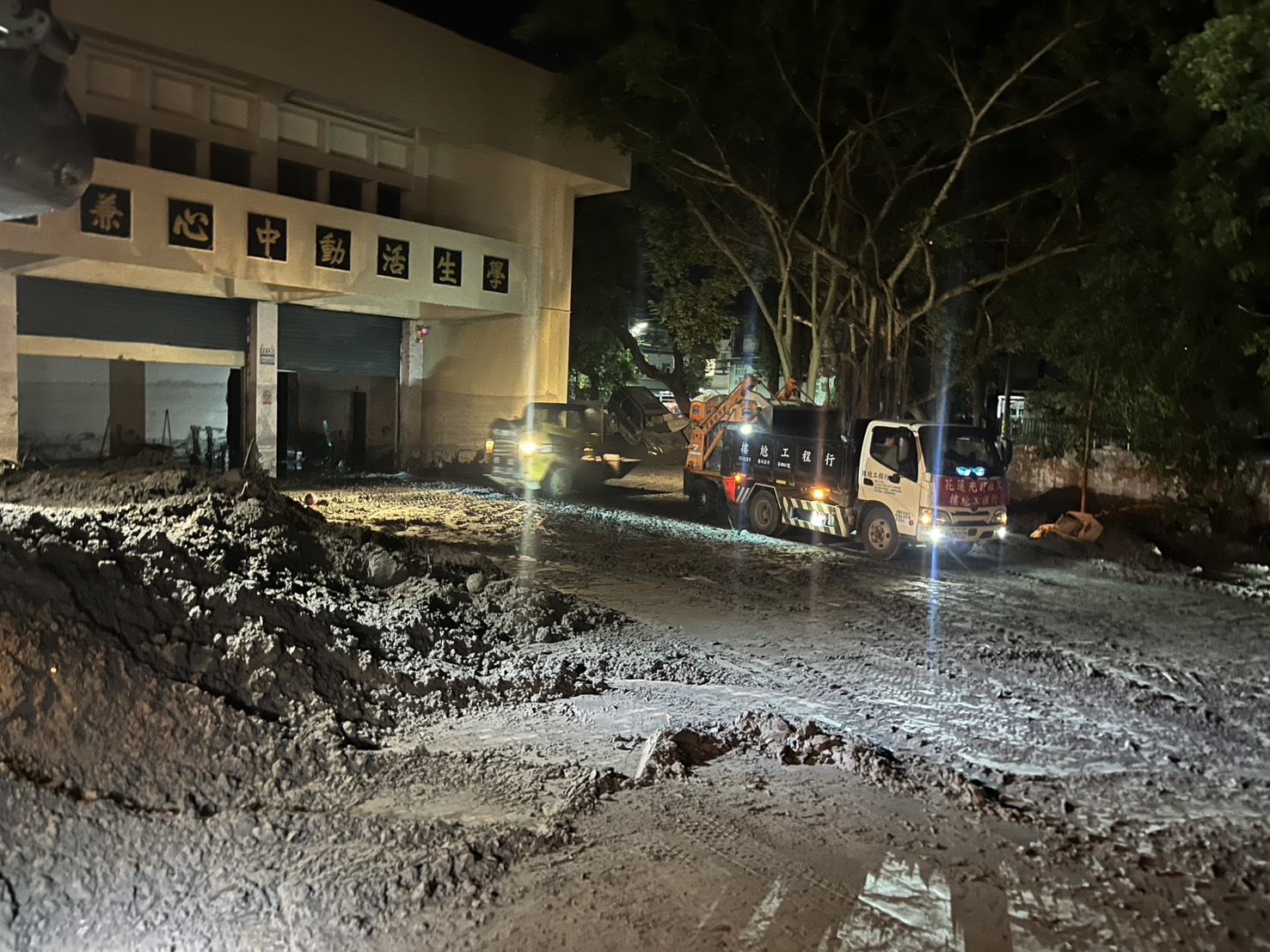 新竹縣政府教育局則迅速動員,媒合2組大型重機具團隊,包含怪手、山貓、斗車、抓斗車與鏟土車等重型設備,馬上進駐光復國中清淤現場。青年事務科更號召18位青年志工,自備高壓清洗機等工具,從10月4日起3天在校園清淤。