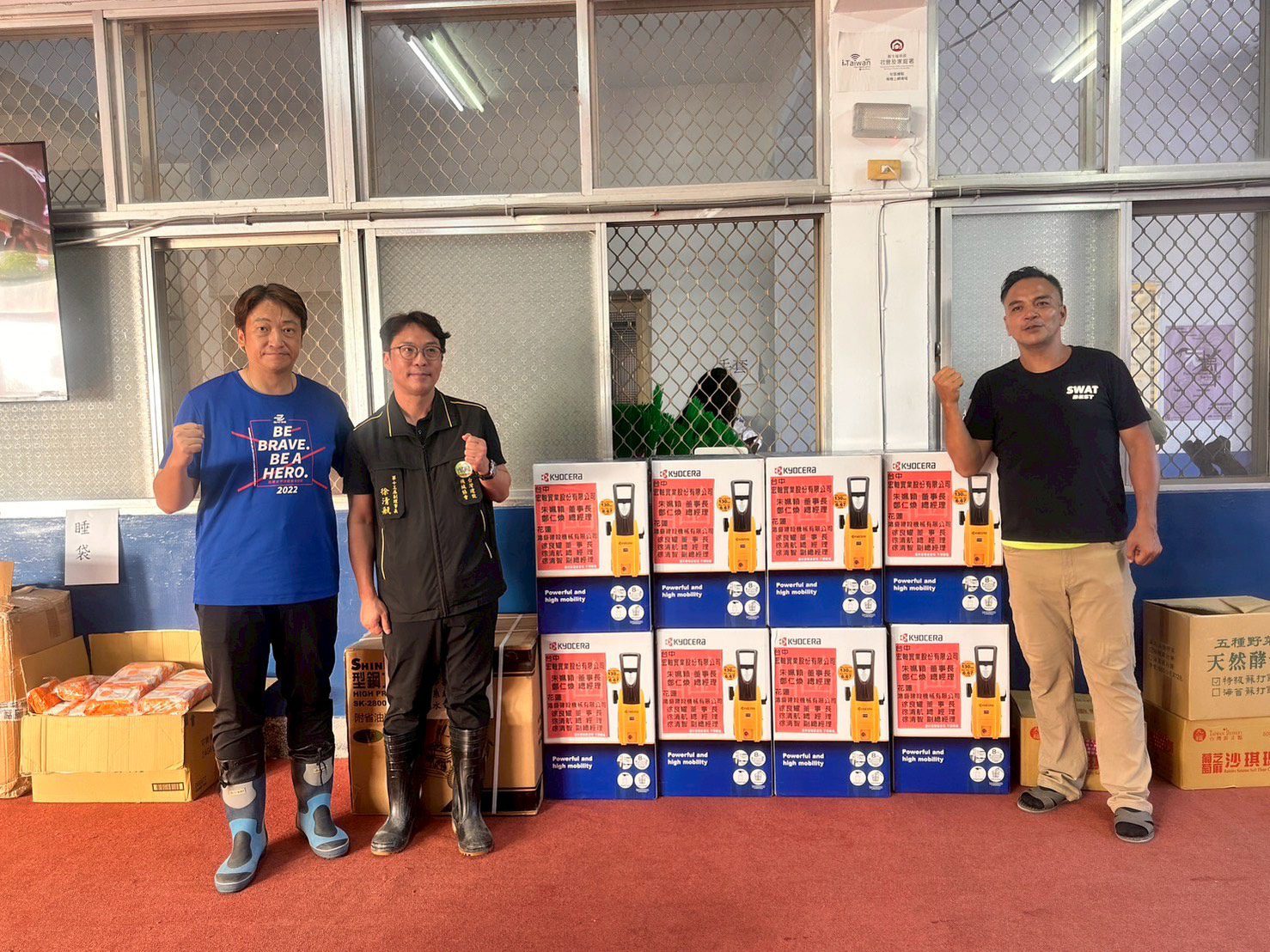 ▲花蓮議員魏嘉賢(右二)協助轉介宏軸實業與鴻盛建設公司的愛心物資。(圖/魏嘉賢服務處提供)