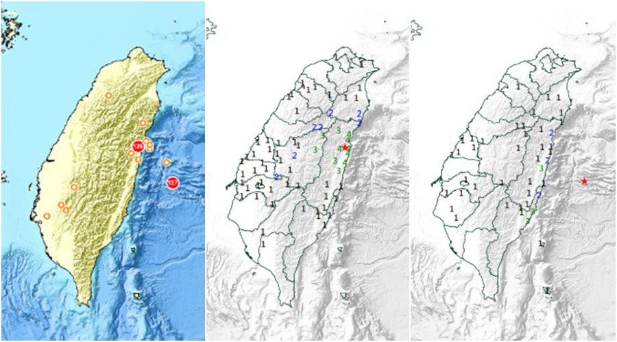 今天10月8日上午發生兩起顯著有感地震,分別是上午7時52分規模5.0、深度6.1公里、震央在花蓮吉安的地震,在花蓮市等多處地方都出現4級的震度;另一起是上午11時33分規模5.0、深度28.9公里、震央在花蓮縣政府東南方68.4 公里的海域,花蓮東富及臺東成功都出現3級震度。