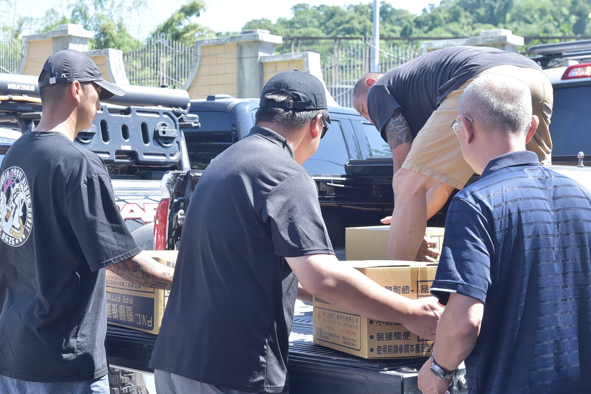 繼日前台中市長盧秀燕秉持「人飢己飢、人溺己溺」精神,率領「家具超人」團隊送來再生家具協助災民後,台中水電材料行負責人陳義仁、王振崇也隨後響應,捐贈逾百萬元的水電材料,並於今(8)日清晨親自派車運送至花蓮,五大台的皮卡滿載各種電器,包含58台抽水機、66台電子穩壓機、100組照明設備及大量插座與開關,這些正是受災家庭最迫切的需求。