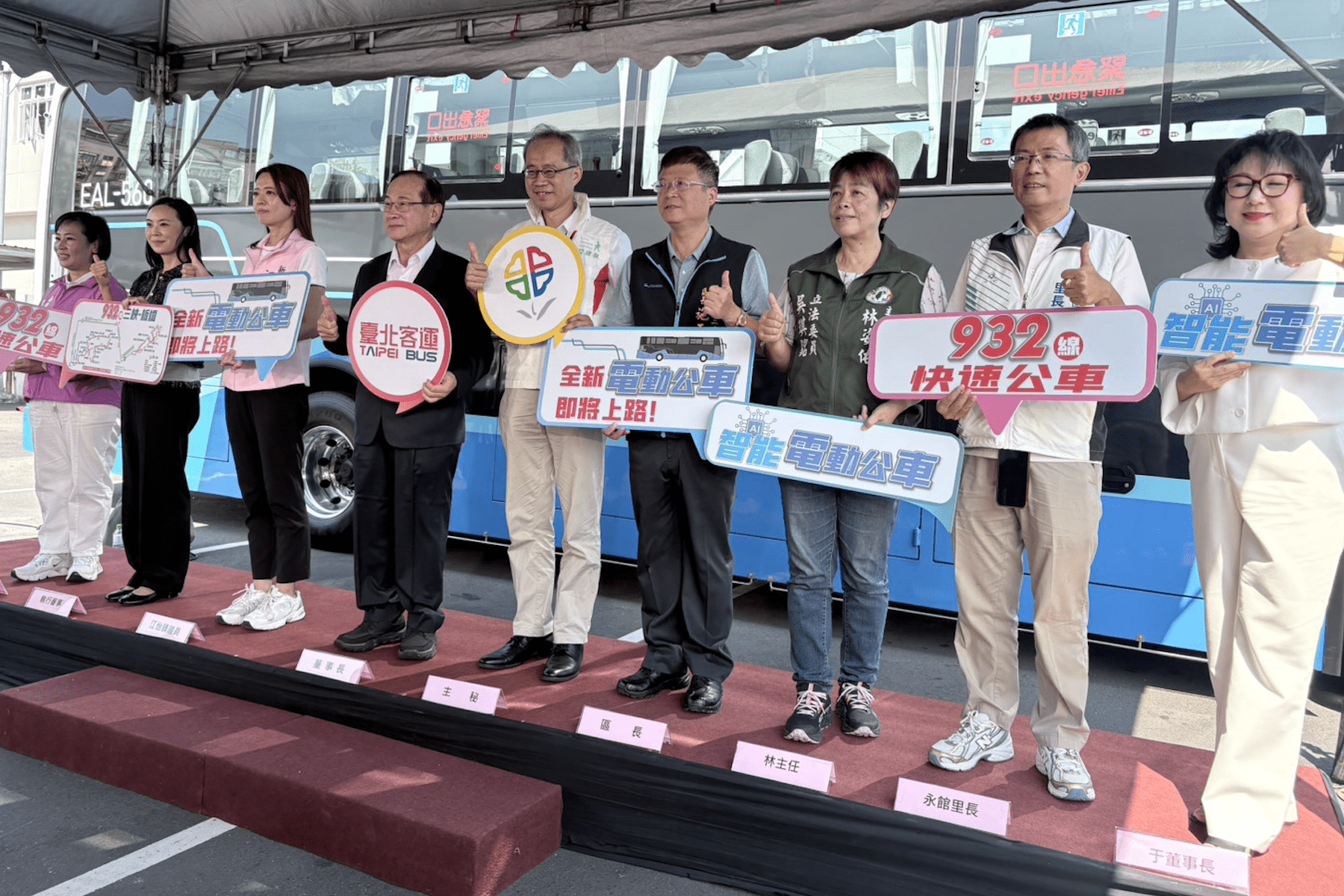 交通局主任秘書朱建全上午出席「臺北客運932快速電動公車啟用儀式」,他說,新北市配合行政院2030年市區公車全面電動化政策,並透過「新北市政府推動綠能環保人本公共運輸市區公車購車補貼要點」,編列相關補助,以鼓勵各客運業者汰換車輛和參與推動節能巴士,迄今新北市電動公車總數己達310輛,並宣布未來城際型車輛也將投入全面電動化行列,持續朝向2030年達成市區公車全面電動化的目標。