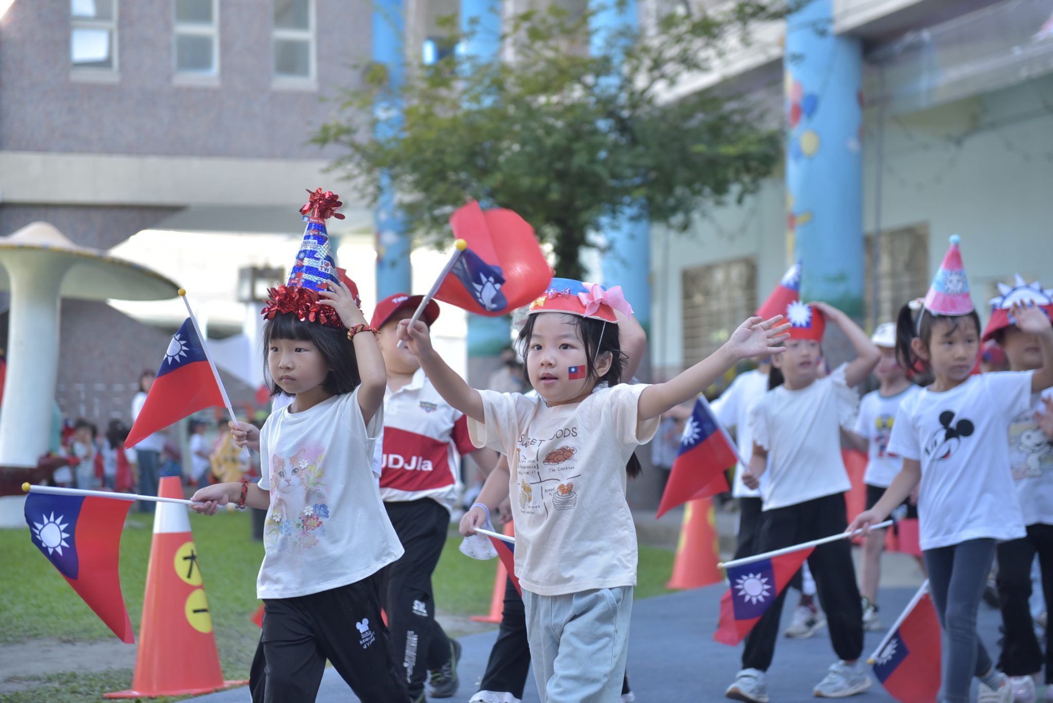 國慶日前夕,花蓮市立幼兒園今 (9)舉辦「雙十國慶」慶祝活動,透過升旗典禮、cosplay三軍進場表演及體能挑戰等方式,讓幼兒在歡樂中認識國慶意義,而幼童也齊聲歡呼:「中華民國生日快樂!」