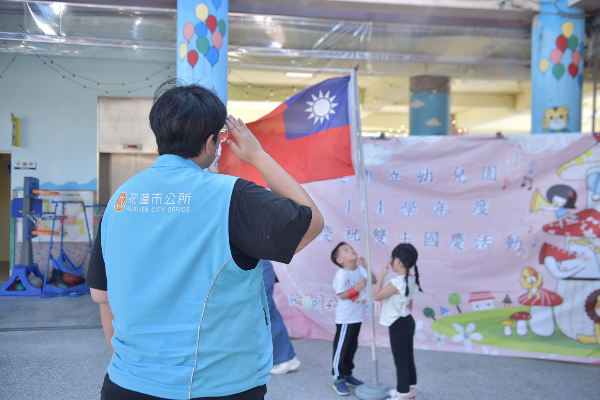 ▲花蓮市立幼兒園「雙十國慶」,舉行升旗典禮。(圖/花蓮市公所提供,下同)