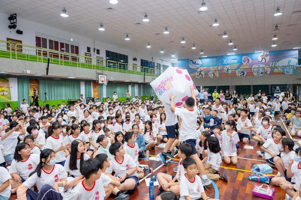 ▲「蘇菲TeamGirls!挺女孩 生理教育巡迴講座」秀朗國小場,課程透過暖身互動遊戲「無懼無束骰」活絡氣氛,讓學生在輕鬆氛圍中建立自信,勇敢面對青春期的各種轉變。(圖/主辦單位)