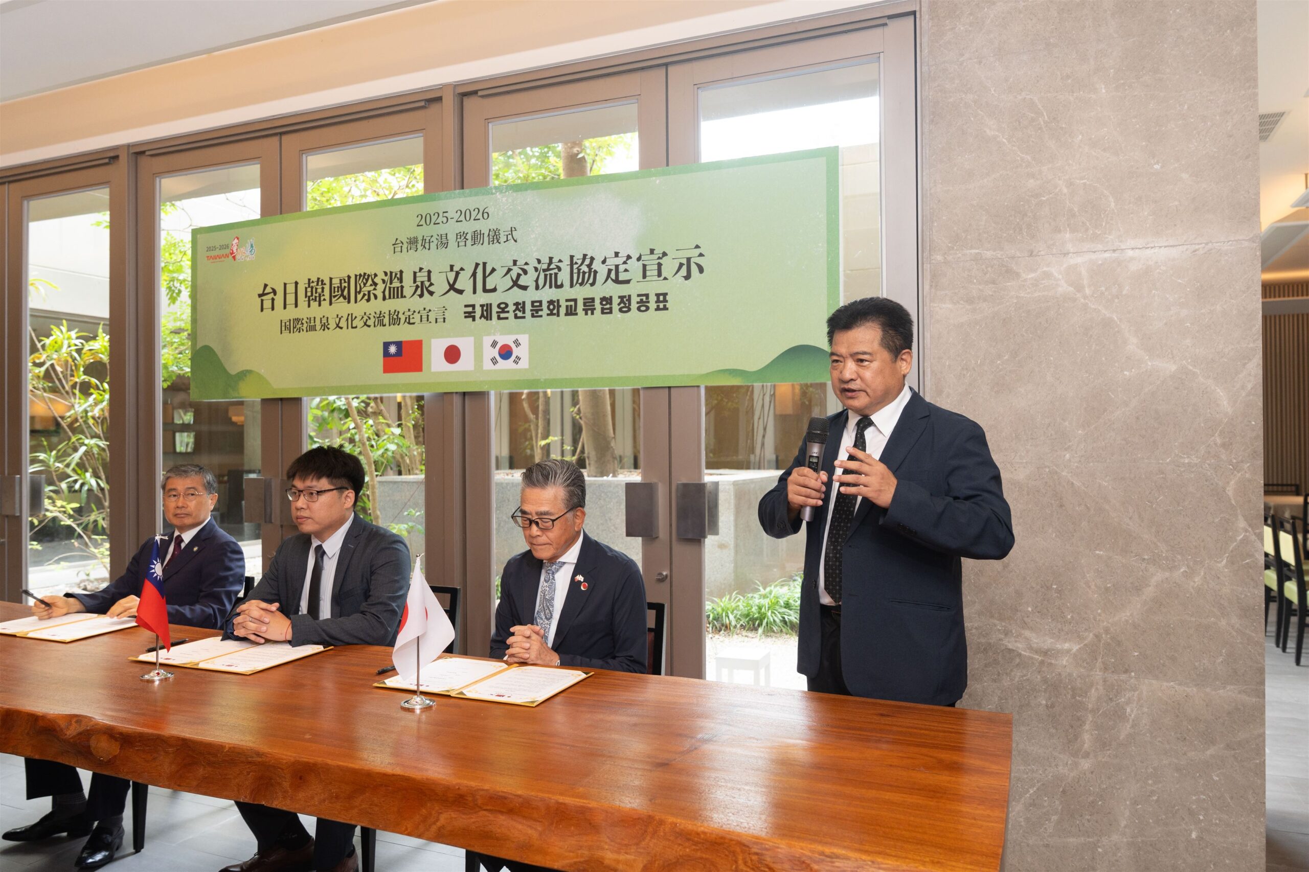 日本溫泉協會會長多田計介致詞指出,台日之間長期在溫泉觀光領域有深厚交流,今日能擴大到涵蓋韓國,具有歷史性意義。「溫泉不只是旅遊資源,更是一種健康文化與生活哲學。我們願與台灣、韓國攜手,共同推動東亞溫泉走向國際化,讓世界了解我們的文化底蘊與專業精神。」