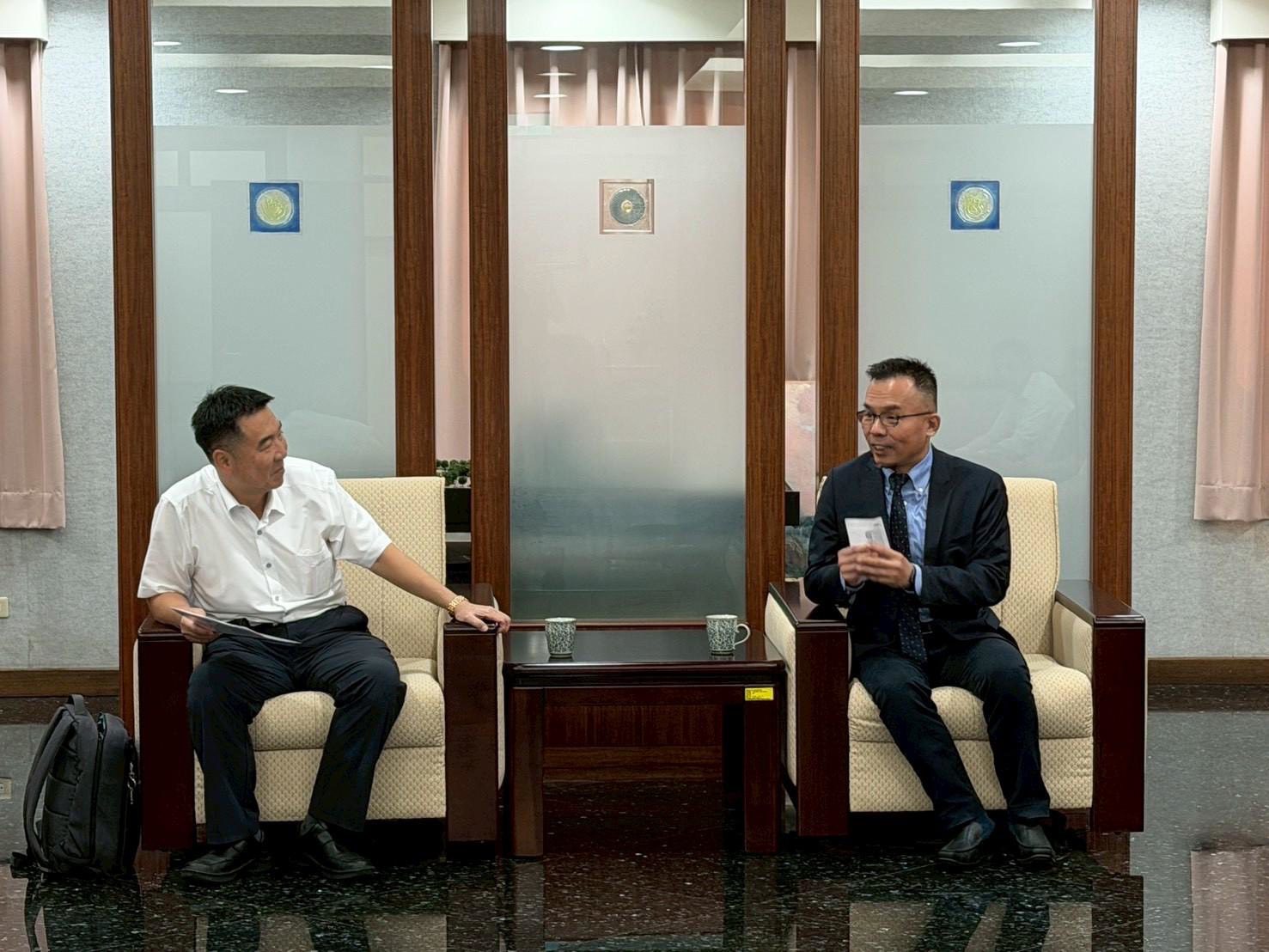洪司長特別拜會台南地檢署鍾和憲檢察長,雙方就司法保護政策推動現況與未來方向深入交流,洪司長除肯定台南地檢署在推動司法保護業務上積極整合資源,建立 社會支持網絡,展現柔性司法精神,並感謝檢察長及全體同仁對於司法人權保障與社會安全維護之重視與付出。
