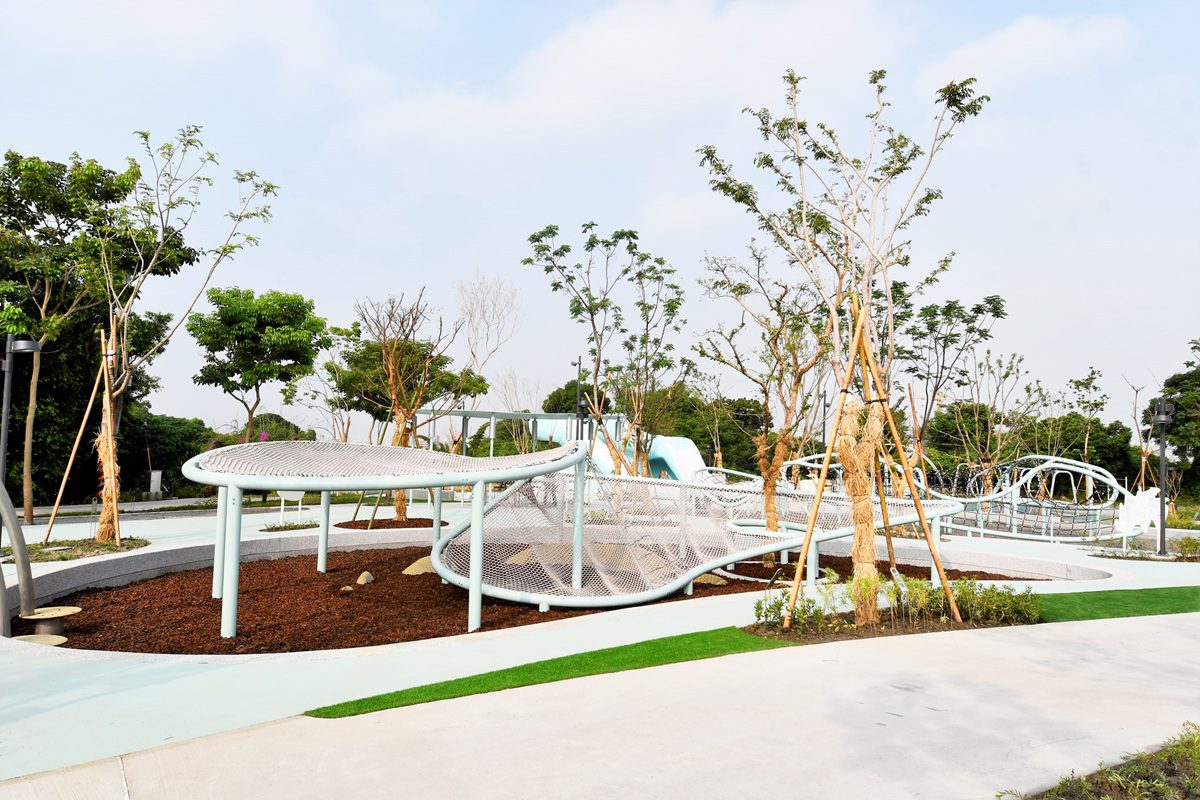 場域設計不僅考量遊憩功能,更導入多項貼心服務與永續設計。園區內設置了休憩座椅、躺椅、景觀涼亭、造型廁所以及無障礙設施。遊戲場種植多達75種原生種喬木、灌木,並搭配解說設施,使其兼具環境教育功能,猶如一座植物園。夜間則透過景觀燈光設計,呈現出與白天截然不同的迷人風貌。