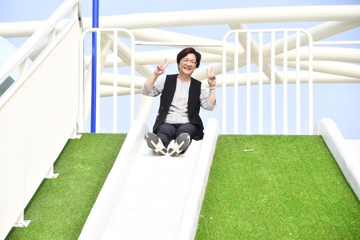 為響應「2025台灣設計展」,彰化縣政府與台灣設計研究院(TDRI)攜手合作,將前身民族新村的區域打造成八卦山「天空遊戲場」,雙十節開始正式試營運,設計展後將擇期正式開幕。彰化縣長王惠美今(9)日上午偕同台灣設計研究院院長張基義、設計師等人前往視察。王縣長表示,「天空遊戲場」設計概念是以「雲朵」以及「灰面鵟鷹」為靈感,有很多景點可以拍照打卡,親子共遊,感謝台灣設計研究院親自操刀,融合地方景觀打造共融式遊戲空間。「天空遊戲場」總經費達新臺幣6,000萬元,縣府向內政部爭取「兒童遊戲場環境設施改善計畫」補助550萬元,縣府自籌5,000萬元,並由台灣設計研究院提撥450萬元經費辦理規劃作業,感謝議長謝典霖及議員對預算的大力支持。未來將在側邊空地興建「長照大樓」,希望長輩能利用公園好好運動,陪伴孫子享受遊憩時光。