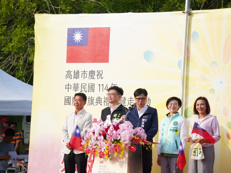 【記者何勁陞/高雄報導】 高雄市政府於10月10日首次移師澄清湖舉辦國慶升旗典禮暨健走活動,吸引逾5000位市民扶老攜幼熱情參與,共同慶祝中華民國114年國慶。市長陳其邁率市府團隊出席,並與多位立法委員、市議員及民眾齊聲祝賀國運昌隆、生日快樂。