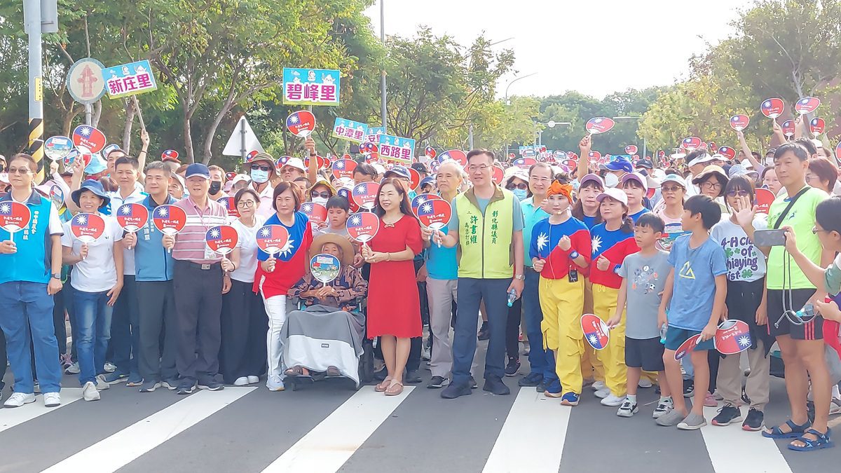 活動第二天是10月10日國慶日,升旗典禮儀式帶著大家邁向新的一天,而後是在暖身運動後的八堡圳健行,參與健走的民眾乘著晨光步履輕鬆的漫遊八堡圳美景。今日參與人群中有剛滿週的小寶貝由父毋推著嬰兒車來參加,也有高齡百歲人瑞一同為中華民國國慶祝賀。