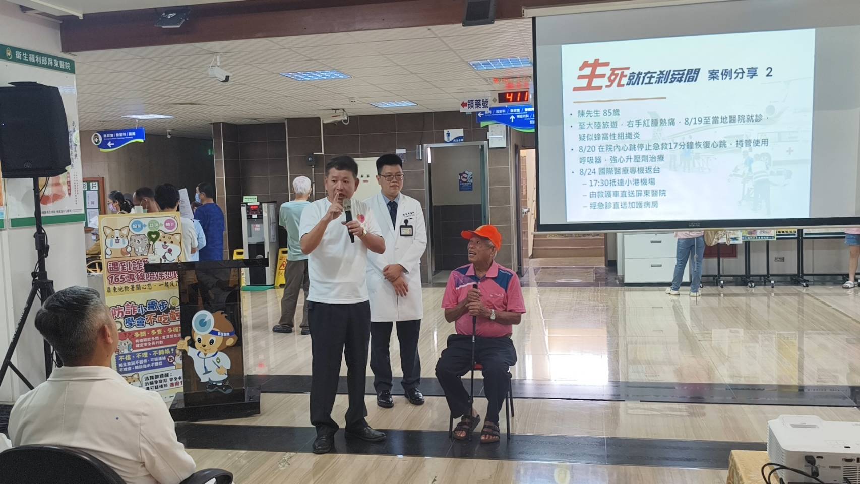 葉東奇說,日前就有一名民眾於門診候診時突發心跳停止,院方急救團隊即刻啟動程序,在與時間賽跑過程中一絲都擔誤不得,電擊與藥物治療後成功恢復心跳,隨即進行心導管手術與低溫治療,最終康復出院。