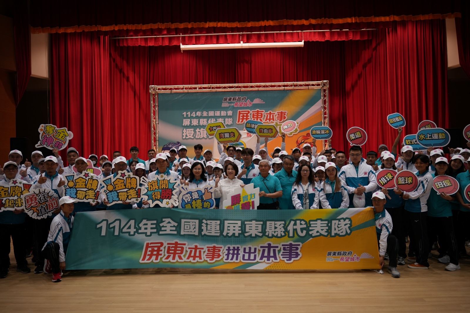 縣長周春米表示,全國運為全國最高規格運動賽事,去年奪得7金12銀14銅,共33面獎牌,勉勵選手在此屆繼續綻放榮光、全力以赴,在高壓賽事中發揮平時訓練成果,同時也責請領隊、教練照顧選手安全,健康出賽、平安返回,為屏東爭取榮耀,屏東縣將在116年舉辦全國運賽事,是繼109年承辦全中運、113年辦理全民運後,全國唯一十年內舉辦三大國家運動會的城市,縣府也積極興建運動場域、提供更多專任工作機會,讓選手們有更好的發展。