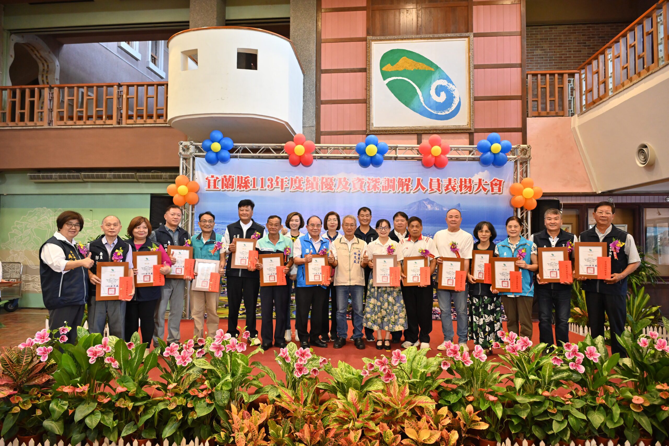 宜蘭縣現有128位調解委員,去(113)年度全縣受理調解件數合計達1,751件,成立件數1,490件,成立率高達85%,在「疏減訟源」及「便民服務」方面發揮極大功能,此次表揚共有23人及2個機關單位獲獎。其中,「資深服務年資」榮獲縣長獎者2人,分別為壯圍鄉調解會委員張錫鏞及大同鄉調解會委員謝玉英;「績優獨任調解」獲獎者15人,包含宜蘭市調解會委員江金元、江愉鈞、吳聰德、林讚生、陳旺誠、曾南國、林季樺、郭成呈、羅東鎮調解會主席林春輝及委員林啓東、廖士謀、何建東,頭城鎮調解會委員陳素秋,以及礁溪鄉調解會主席游瑞源與委員游雪芬。