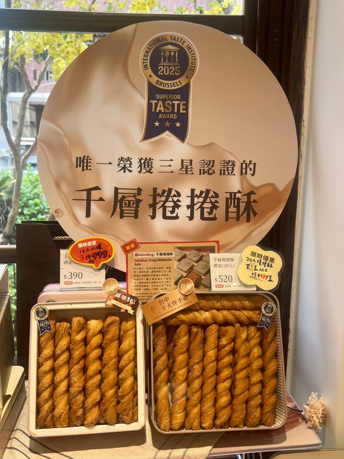 來自台中西區的 獻烘焙(iminding),憑藉獨創的「千層捲捲酥」不僅在台灣市場掀起搶購熱潮,更在國際舞台上為 台中爭光。日前公布的 iTQi(International Taste Institute)國際風味評鑑 結果中,「千層捲捲酥」以總分 90.8% 的表現,一舉奪下三星風味絕佳獎章,成為全台唯一獲得三星認證的千層捲捲酥產品。