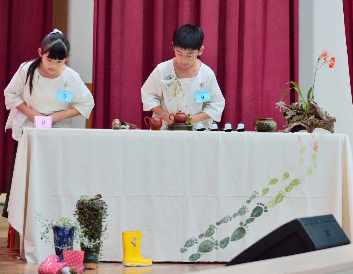 比賽中要在時間內完成茶席佈置,再由主泡者依據茶葉特性控制沖泡時間,將沖泡好的茶湯分成4杯,由茶侶端至評審前進行茶湯品評,最後還要抽籤進行機智問答,相當考驗孩子的臨場反應及對茶的認識。