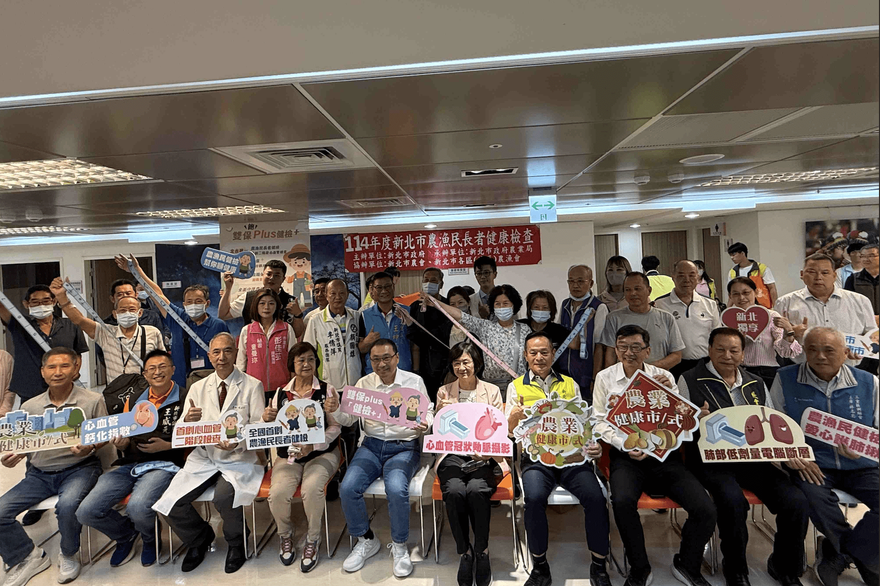 侯友宜表示,感謝醫療團隊的付出及參與,每年分析農漁民個案數據,規劃調整專屬農漁民長者的健檢方案,從肺部電腦斷層、心血管鈣化指數、健康指引手冊、再到冠狀動脈攝影,每年都有不同的優化服務,照顧新北市農漁民長者。為提升農漁民福利,從明年1月1日開始,新北首推「雙保(飽)PLUS健檢福利政策」,再加碼100%補足農民職業災害保險自付額,農保、農職保、農漁民長者健康檢查由市府全力協助,全面守護新北市的農漁民朋友們,讓農漁民從農從漁能夠健康永續。