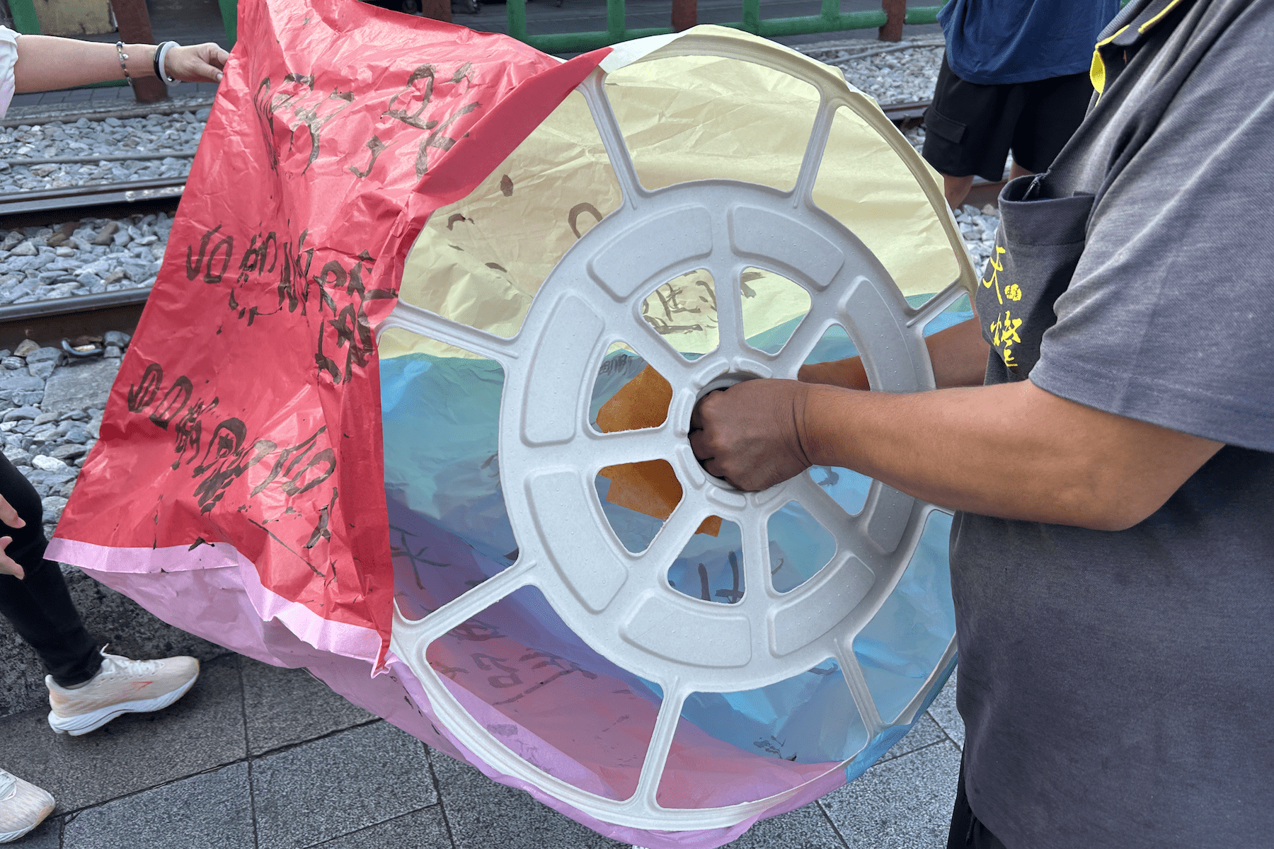 ▲鼓勵旅客使用環保天燈,減少環境污染。(圖/記者 黃俊育 攝)