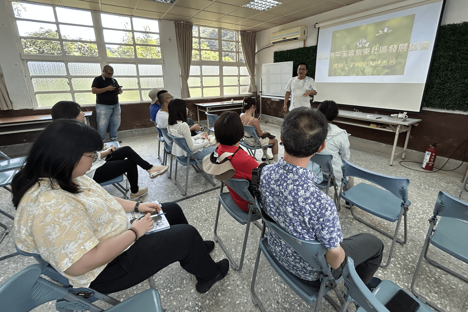 ▲在紫東社區體驗品蜜活動,蜂農講解。(圖/記者 黃俊育 攝)